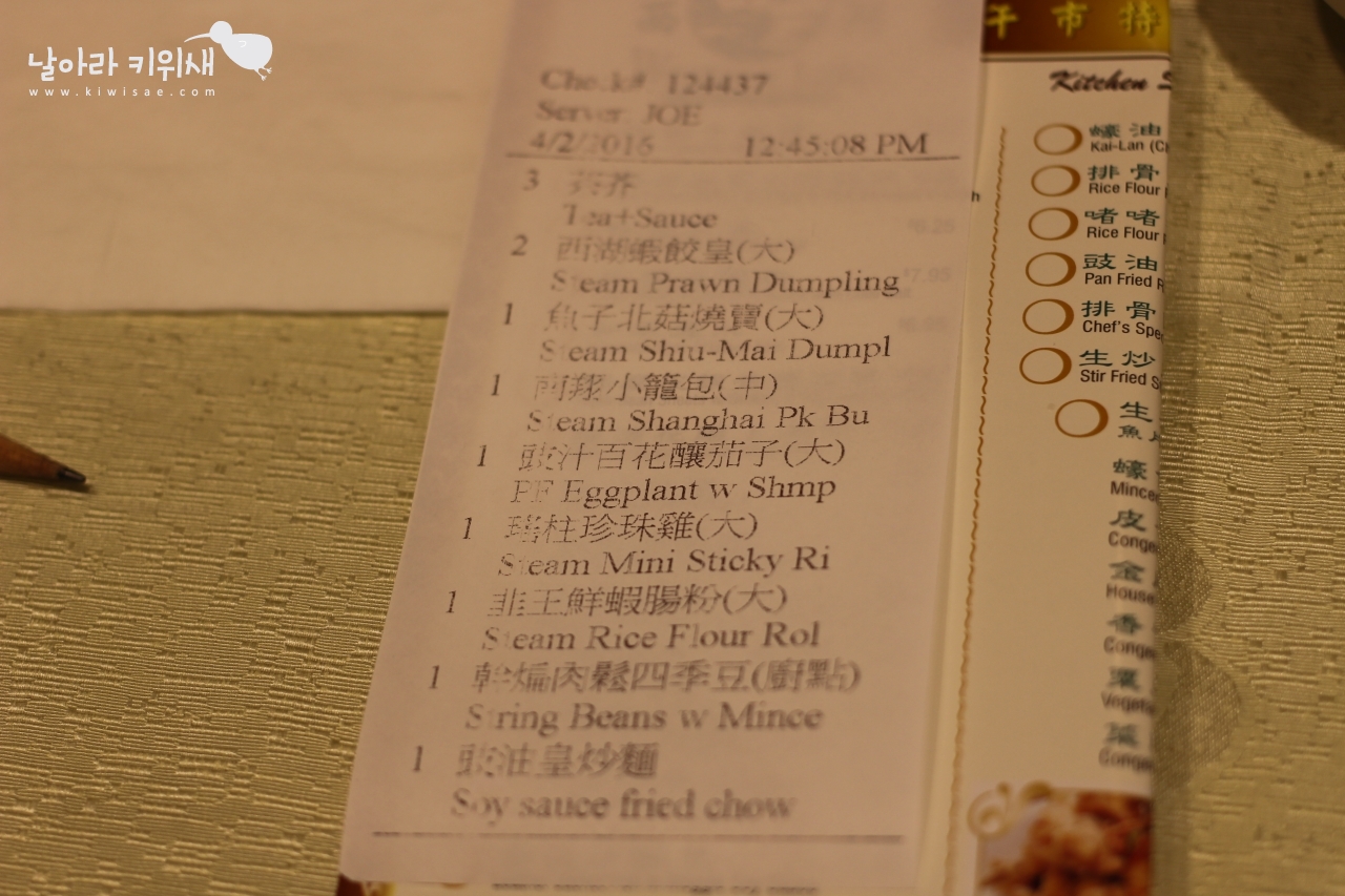 딤섬이 나올 때마다 체크표시를 해주고 간다.