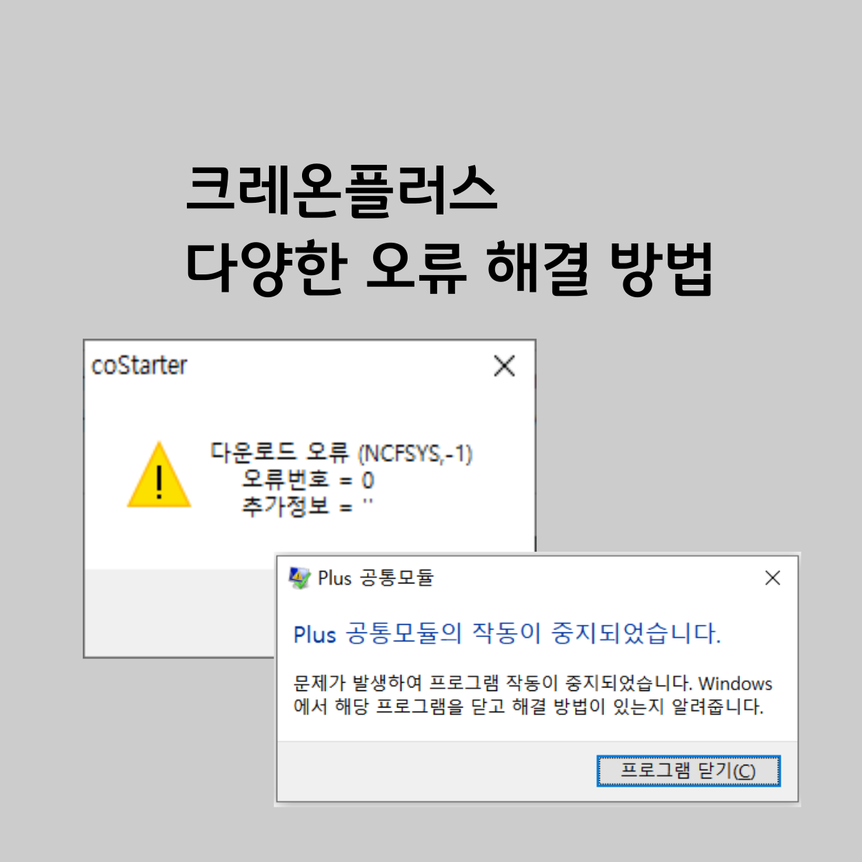Plus 공통모듈의 작동이 중지되었습니다.