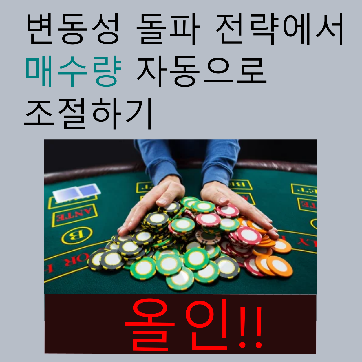 변동성 돌파 전략 단점 업그레이드에서는 기본 변동성 돌파 전략에서 사용하는 고정된 돌파계수 K값을 시장의 변화에 따라 변동시켜주는 방법을 다루었다면 이번 포스팅에서는 매수량을 자동으로 조절하는 방법을 알아보자.