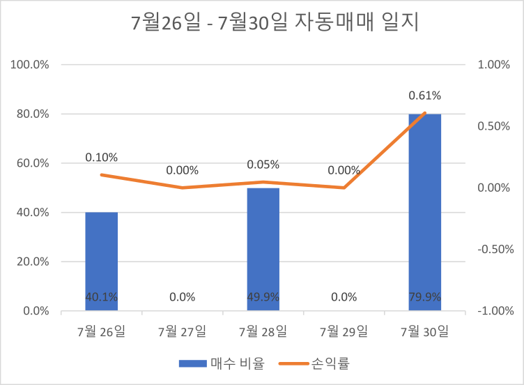 7월 30일은 매수 비율 80%에 수익률도 0.61%로 제일 높았다.