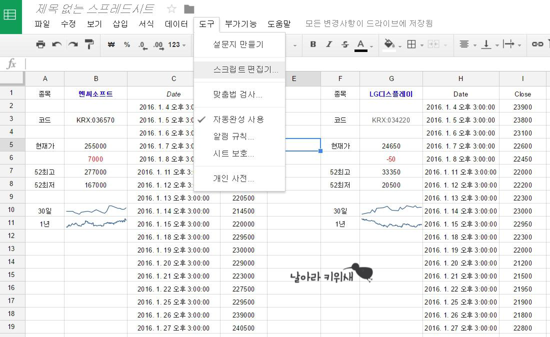 이제 구글 스프레드시트로 목표가 이메일 알림을 받아보자