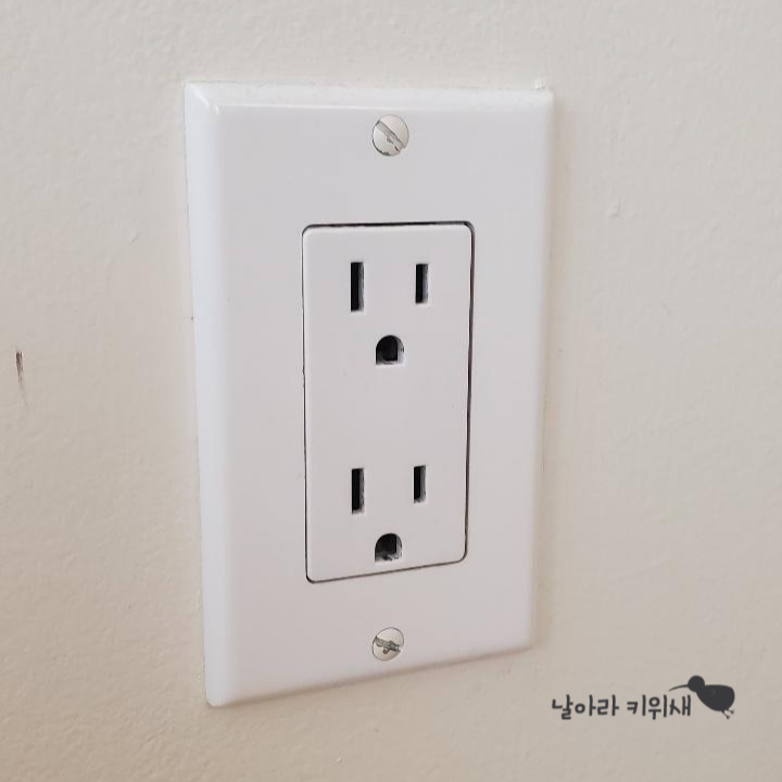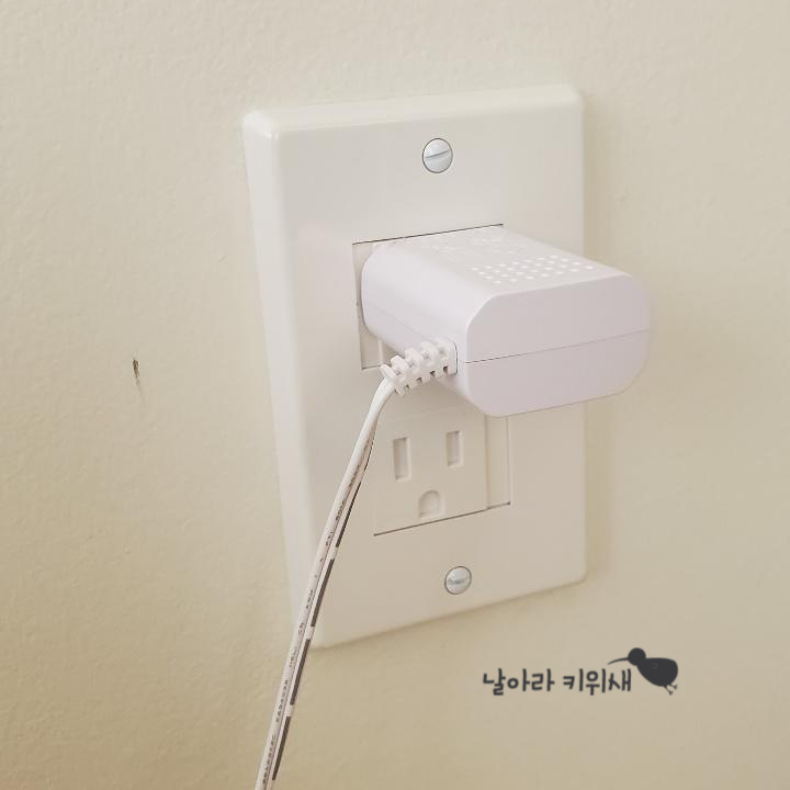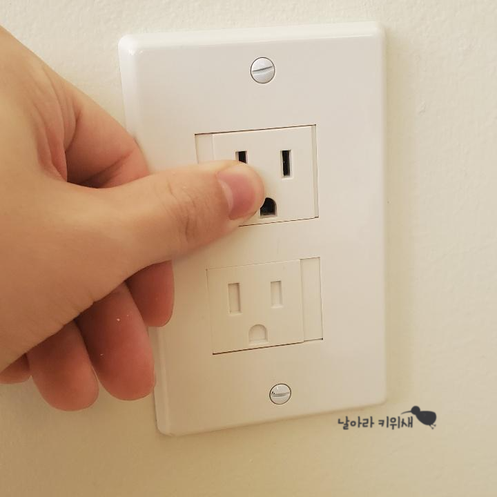 콘센트에 꼽을 때는 살짝 오른쪽으로 밀면서 밀어 넣어주면 쉽게 들어간다.