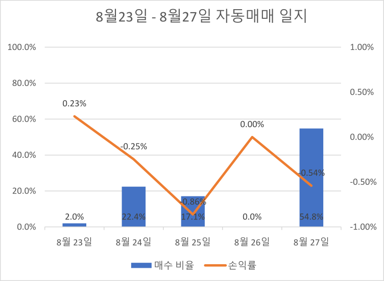 그나마 시장 상황에 따라 매수 비율을 다르게 설정해놓았기에 큰 손실은 피할 수 있었다.