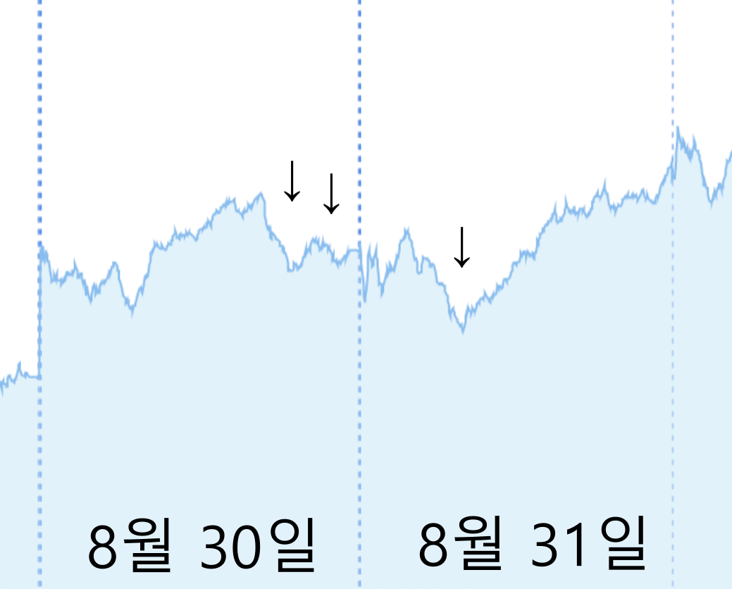 그래도 8월 31일 코스피를 보면 수익이 났어야 했다.